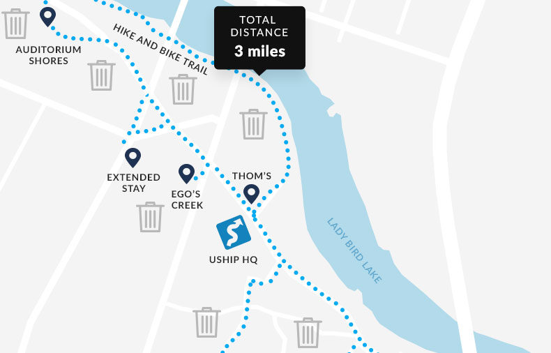 At uShip, we’re especially lucky to have an office planted smack dab between the beautiful Lady Bird Lake, a lush greenbelt and creek, and the action of downtown – an area we’ve affectionately coined “The Riverhood.” To show our appreciation for the beautiful space around us, we recently took a few hours to get out and clean up our ‘hood.