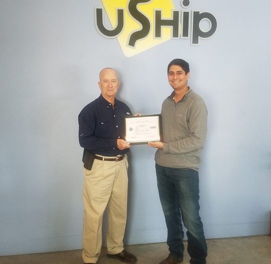Deployed soldier and uShip sales team member Lt. Mary Ellen Davenport honored her fellow colleagues with the Patriotic Employer Award last week.