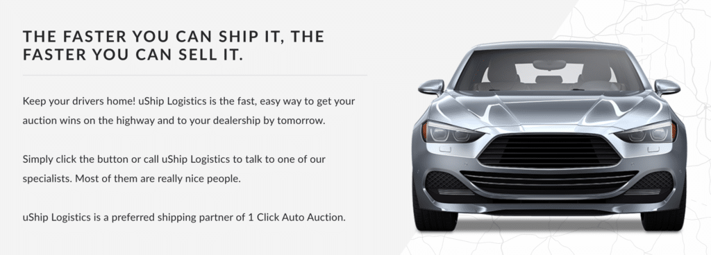 1Click is using uShip Logistics, uShip’s in-house vehicle shipping brokerage, to offer their customers additional speed, ease, and personalized attention when it comes to shipping vehicles from the auto auctions to their lots.