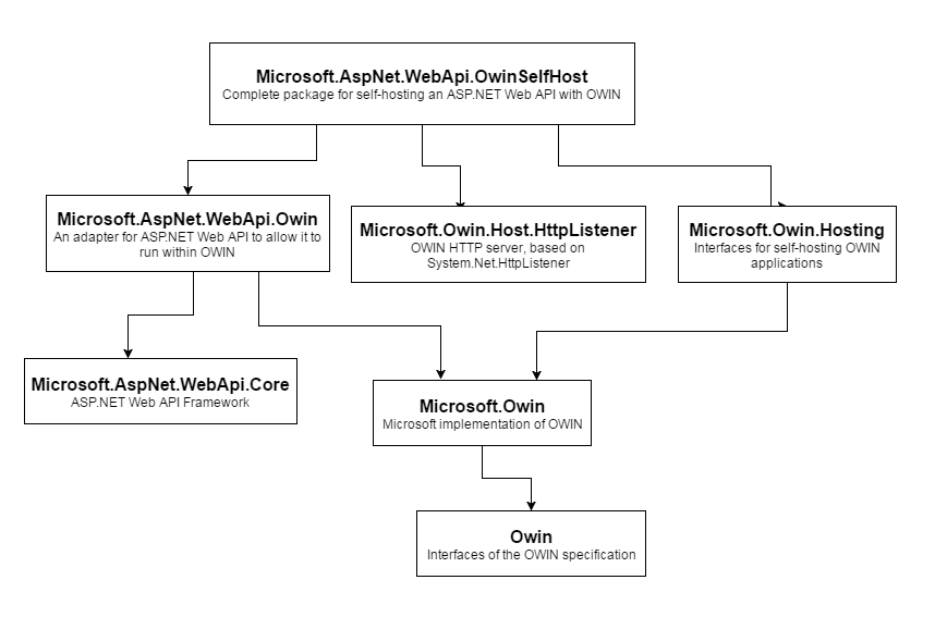 - OWIN: Open Web Interface for .NET. Acts as an adapter between web servers and web applications. This is a specification, not an implementation.