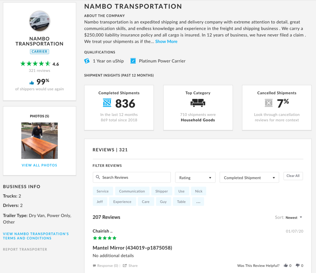 A cornerstone of this profile page — uShip’s Ratings and Reviews system, the thing that enables trust between complete strangers — is also undergoing an upgrade of its own.