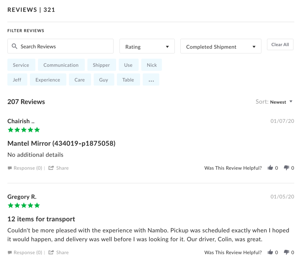 As shipping customers will tell you, the first thing they look for in reviewing a carrier is their star rating and feedback. Because of this, we’ve put reviews front and center within your profile. Now, users can sort and search your reviews to find feedback that’s most relevant to their shipment.